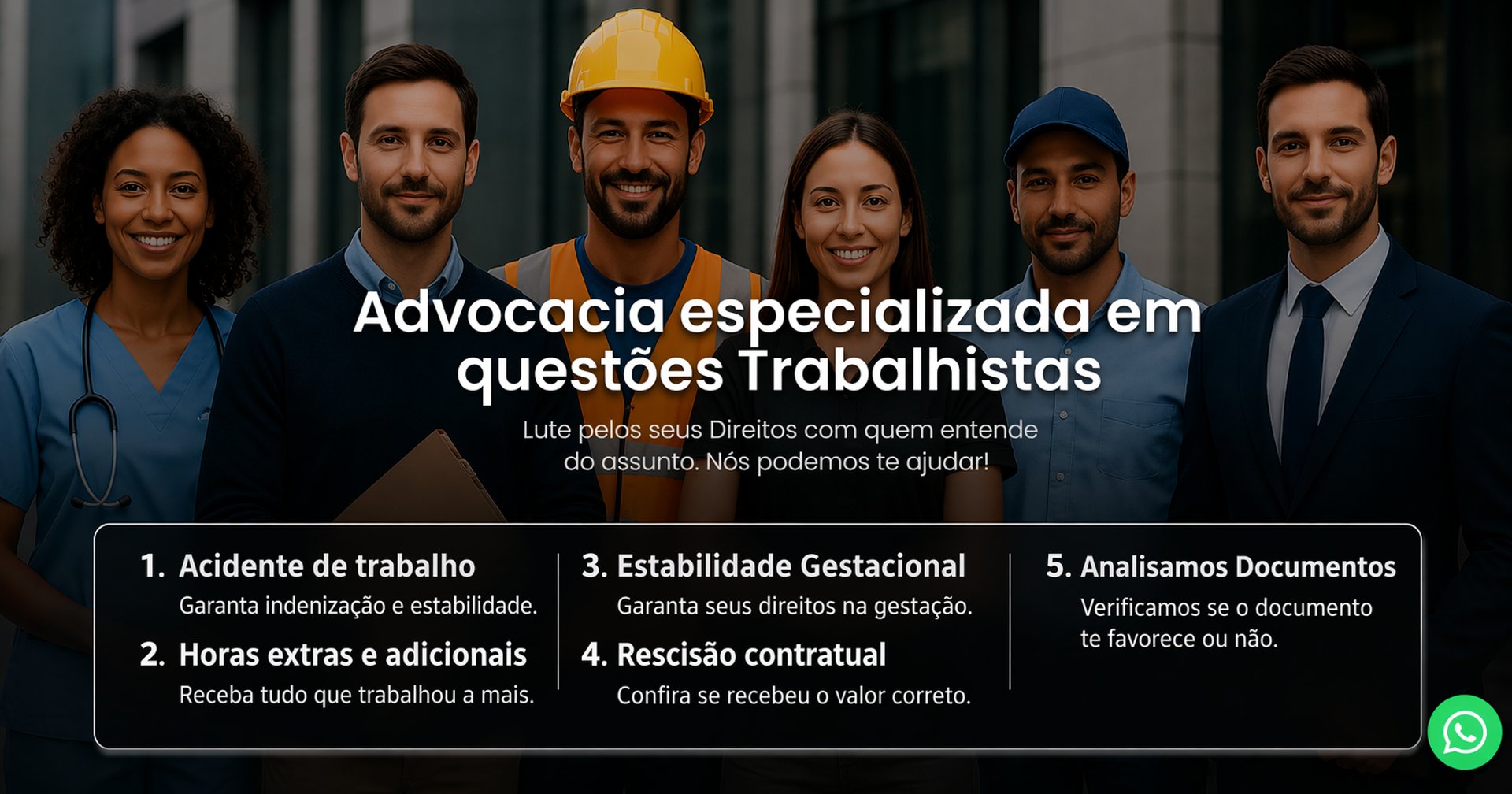 Com atuação técnica e atendimento individualizado, buscamos oferecer orientação clara, avaliação criteriosa de cada situação e condução segura das medidas necessárias. Nossa missão é proporcionar ao trabalhador suporte jurídico confiável e atuação firme na defesa de seus direitos
